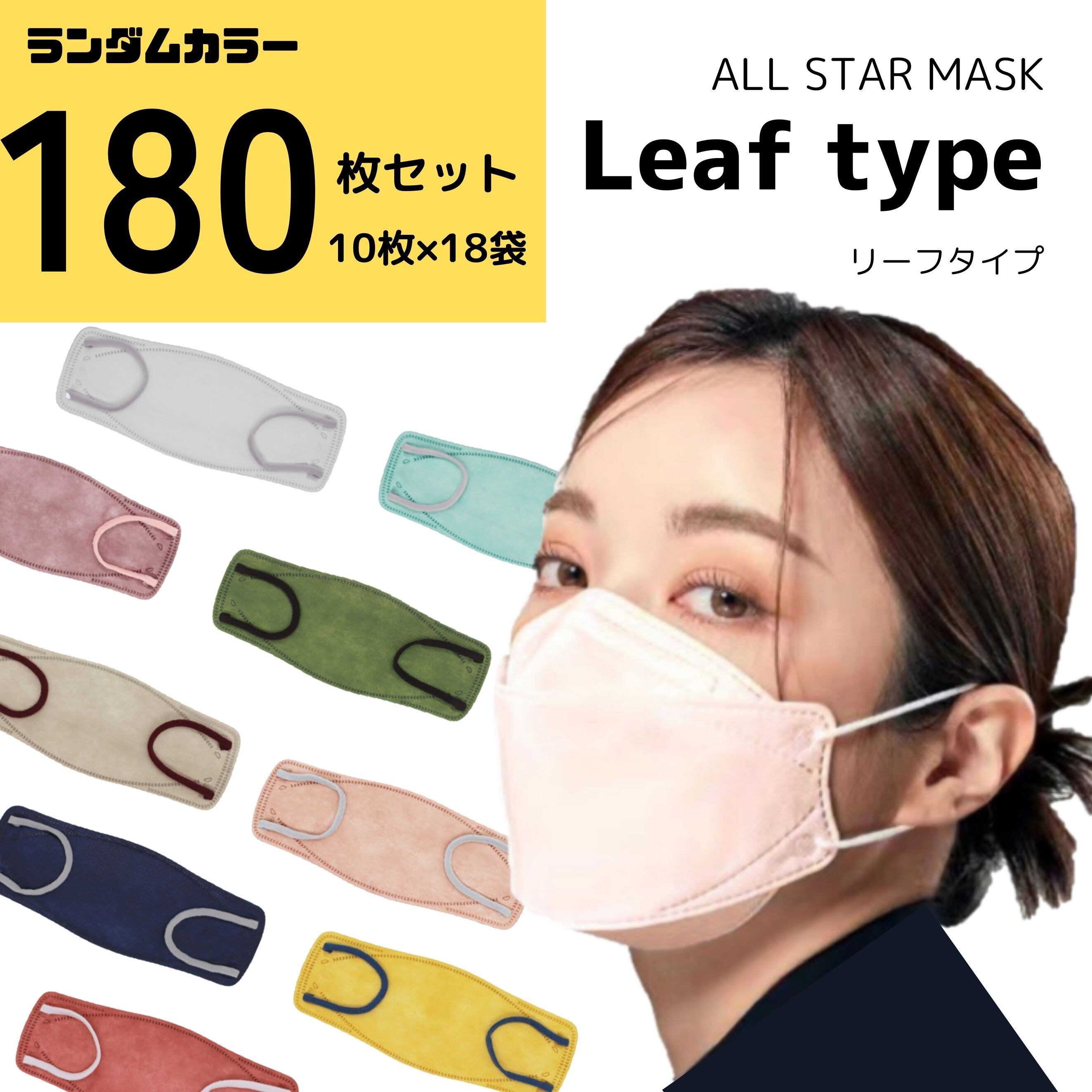 ☆50%オフ! 送料無料!☆【カラーはショップにお任せ!】オールスターマスクリーフタイプ180枚入り(1袋10枚×18袋) KFタイプ韓国マスク不織布 耳ひもバイカラー カラーマスク 使い捨て 血色マスク フェイスライン 小顔効果 高級感 形状記憶 大人用 送料無料 ALLSTAR BCマスク