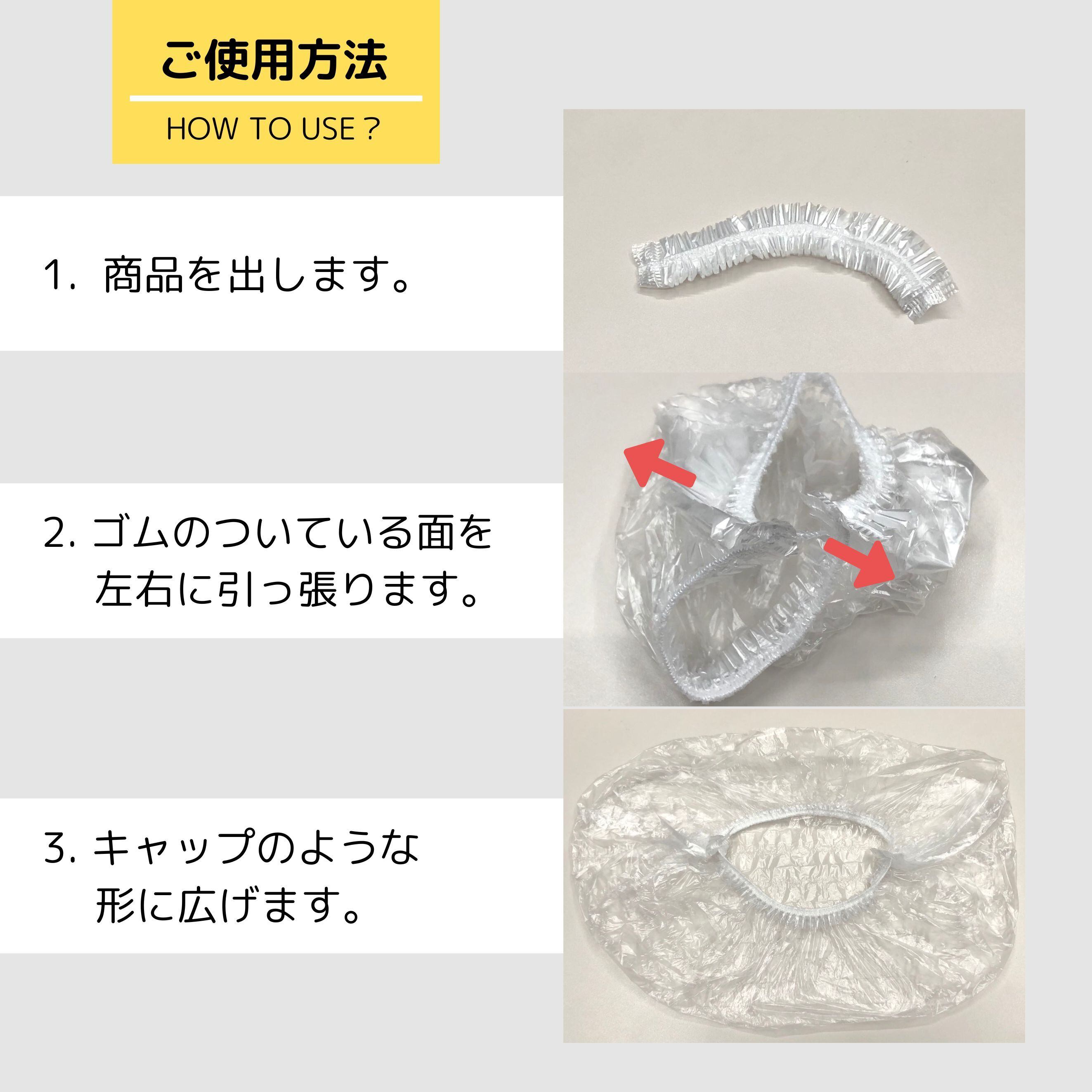 シャワーキャップのような形状のゴム付きポリ袋で
