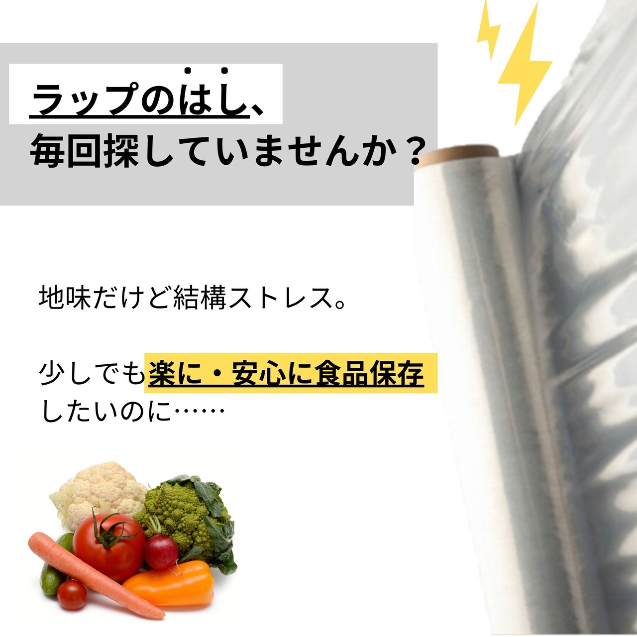 ラップのはしを探すのが面倒……もっと手軽に食品を保存したい……。